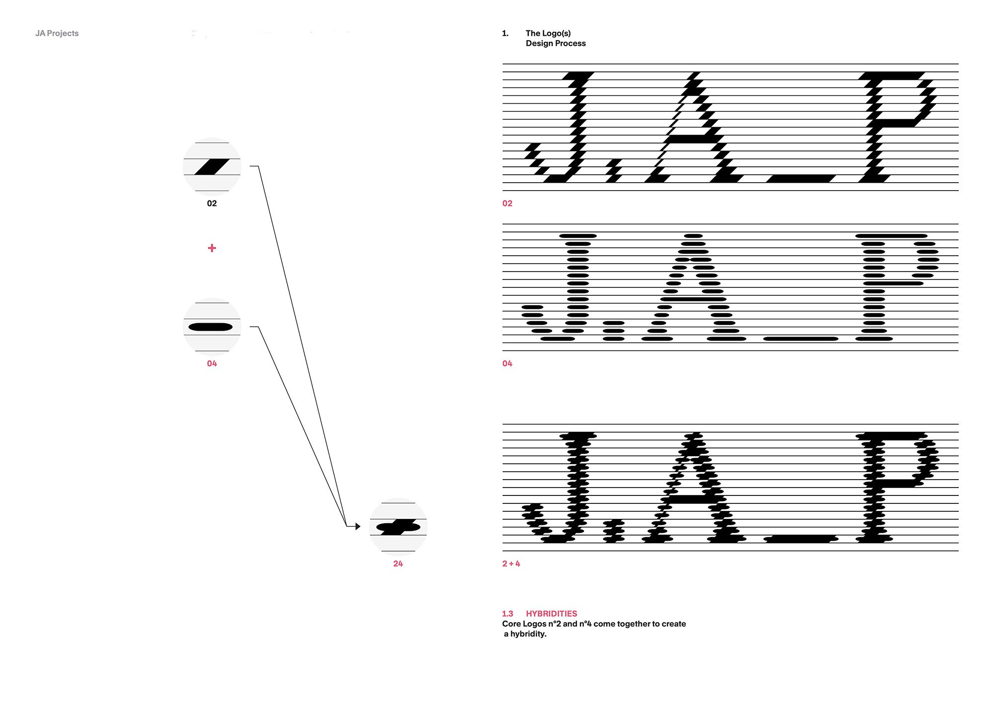 The final logo is not a static image, but an amalgamation of distinct graphic elements that come together to create a range of expressions – both contrasting and hybrid, making unusual shapes from combining conventional modules. In practical terms, this means variations of the logo are available for different contexts: an invoice, a project brief, their website. Such a flexible design approach becomes a metaphor for how identity is inherently performative and multifaceted, conveying JA Projects’ multi-cultural ethos.